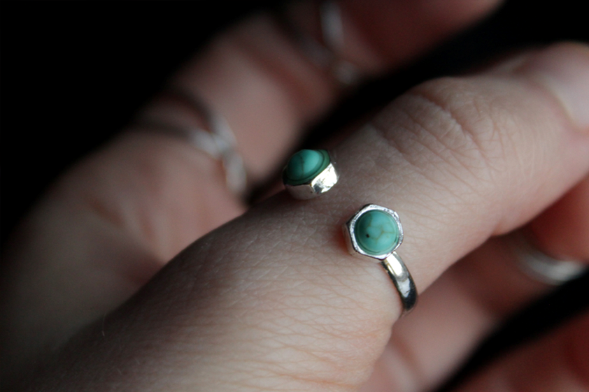 同じ指や手に重ね付けする場合は、指輪の素材を統一するのが良いです。