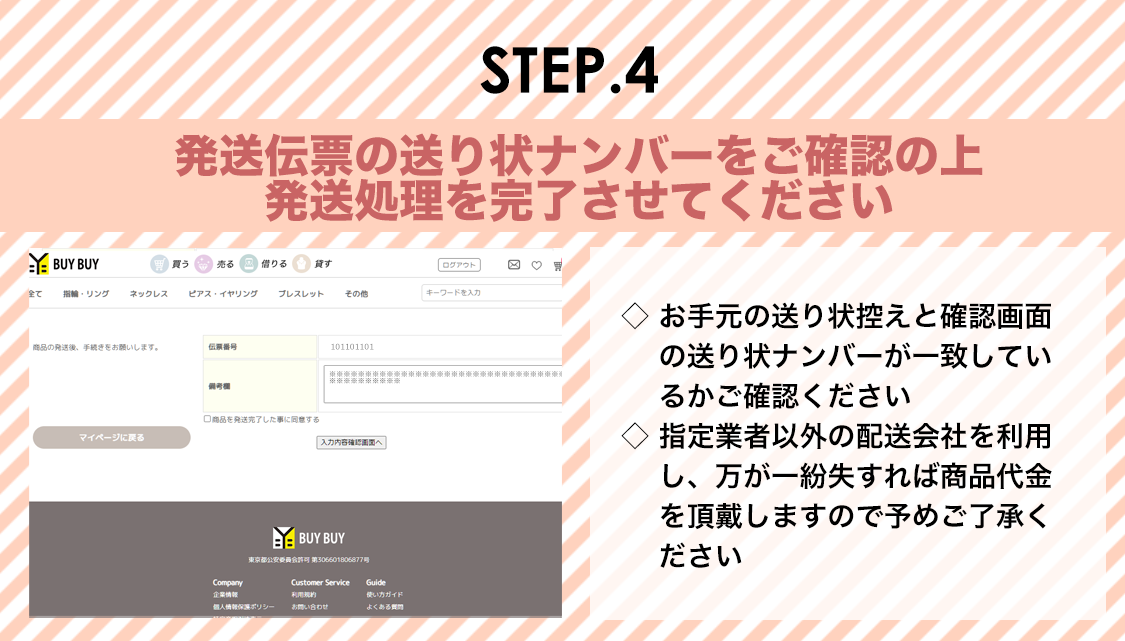 4.集荷依頼もしくはコンビニや郵便局に持込み発送手続きを行ってください。